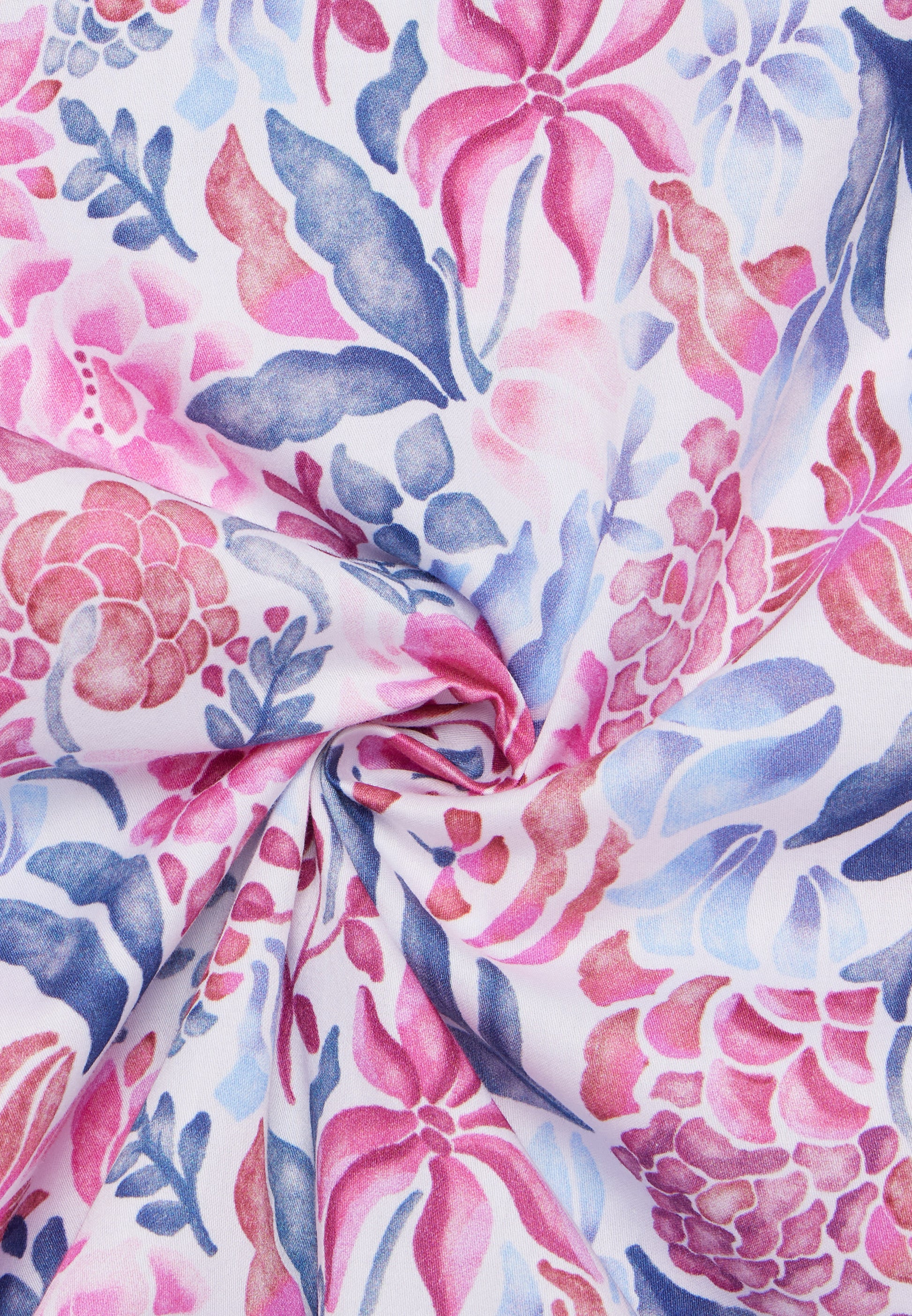 Experience elegance with the ETERNA Pink and Blue Floral Classic Shirt, crafted from premium cotton satin for a soft, luxurious feel. Its delicate floral digital print highlights a refined, feminine silhouette through a regular fit and straight cut, complemented by a gently rounded hem. Designed for comfort and style, this long-sleeved blouse features a 66 cm back length, ensuring ease of movement and lasting wear throughout the day. It balances flattering tailoring with everyday comfort.