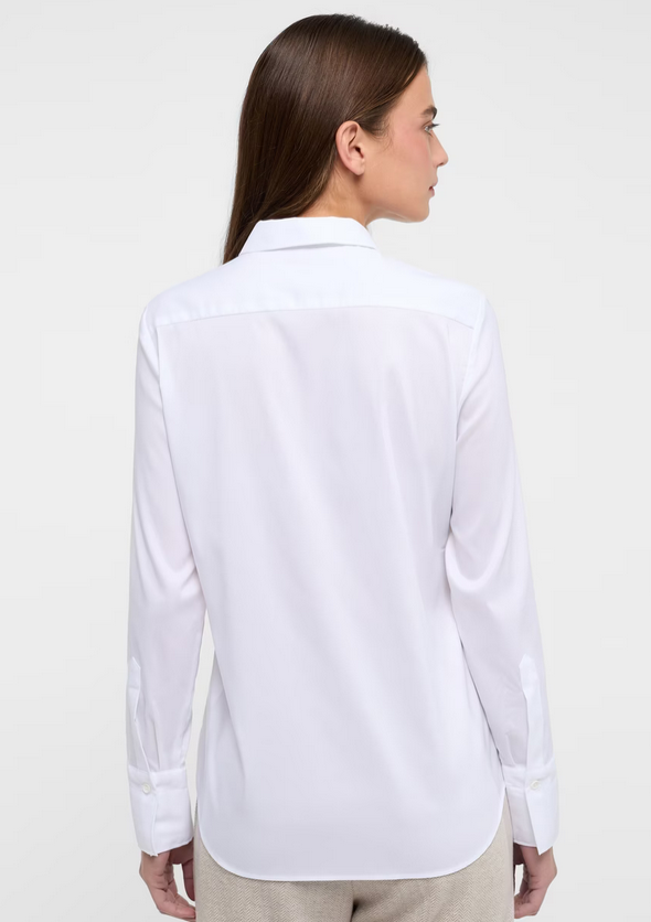 Stay sleek and comfy in the ETERNA White Fitted Classic Shirt. With a figure-hugging cut and stretchy fabric, this blouse offers the perfect balance between fit and comfort. Its super-soft and easy-iron material is also breathable and leaves a cooling effect on the skin. The classic shirt collar and full-length button placket add a touch of elegance. (Size 36 = 68 cm back length)