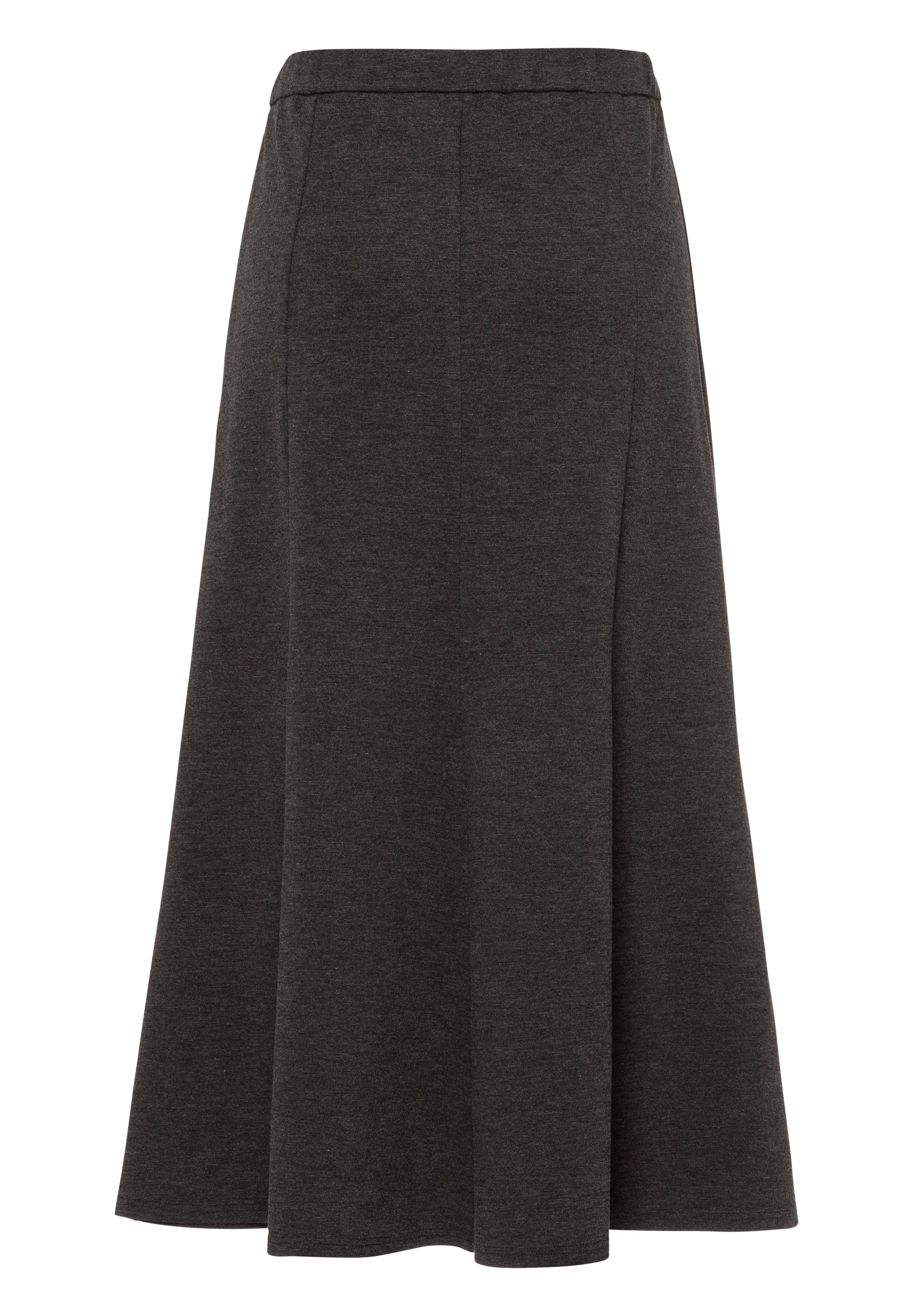 The Frank Walder Charcoal Grey A-Line Skirt features a pull-on waist for effortless wear. Its slightly flared shape adds a refined, feminine silhouette while allowing freedom of movement. Crafted from a soft viscose mix jersey, this skirt ensures lasting comfort throughout the day, making it an elegant choice for both professional and casual settings.