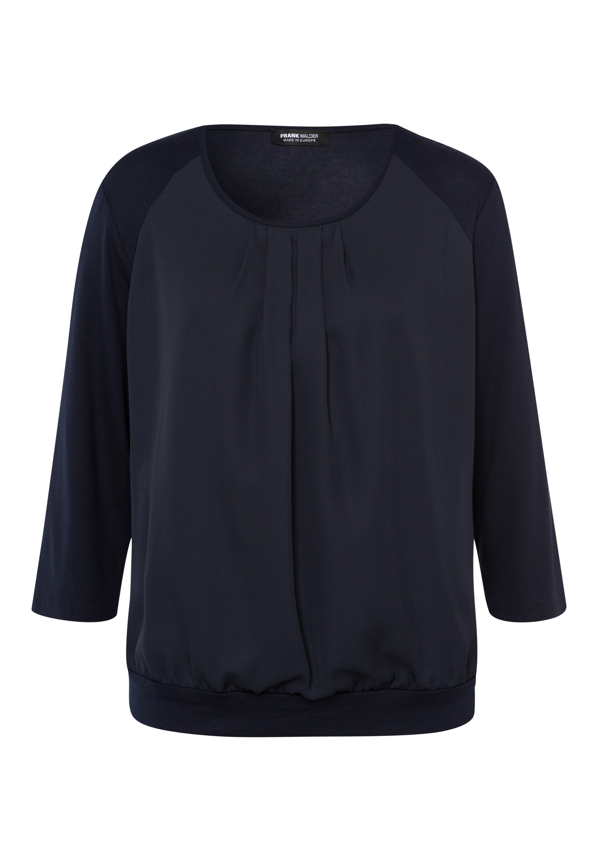 Elevate your wardrobe with the Frank Walder Navy Classic Blouse, featuring a timeless scoop neck and elegant bracelet-length sleeves. Designed with a comfort waistband, this blouse blends refined style with ease of wear—perfect for sophisticated, all-day confidence.