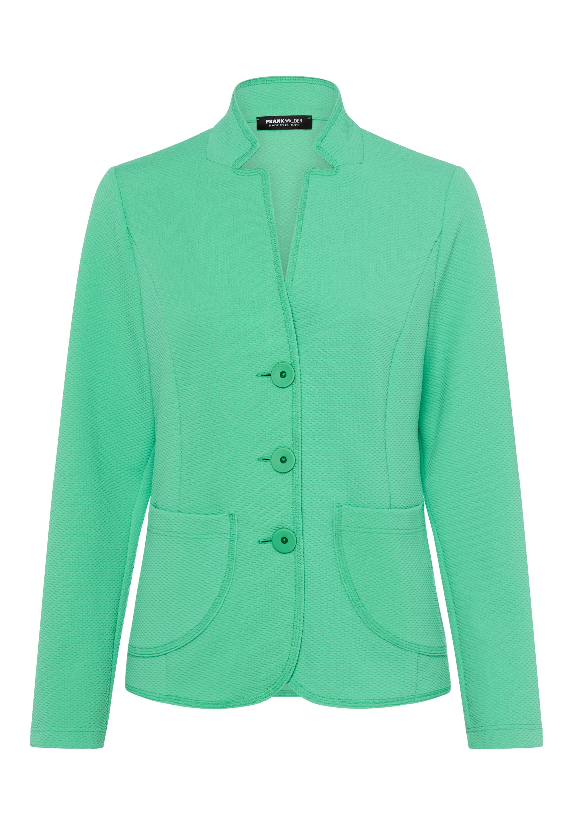 Elevate your wardrobe with this sophisticated Frank Walder single breasted blazer in a rich green shade. Designed with a slimming back panel that creates a flattering silhouette, this button-up style offers timeless elegance for both professional and casual occasions. The structured tailoring ensures a polished appearance, while the thoughtful construction supports a confident, streamlined look. Perfect for layering or wearing solo, this blazer is a versatile investment piece that works beautifully with your existing pieces.