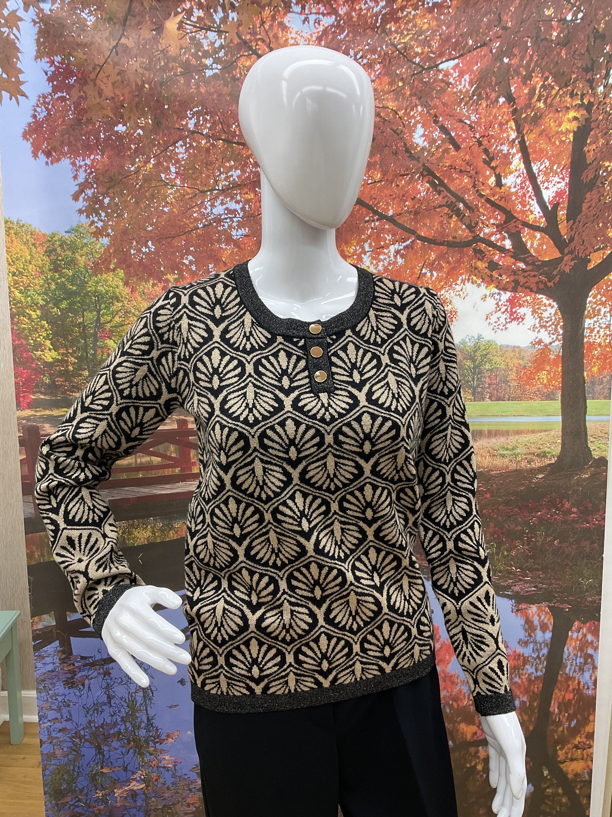 Elevate your wardrobe with the LEO&UGO Black and Gold, featuring refined button detailing and a classic round neck for timeless appeal. Its full-length sleeves offer a sleek, polished look perfect for sophisticated occasions or professional settings. This piece combines understated elegance with versatile style.