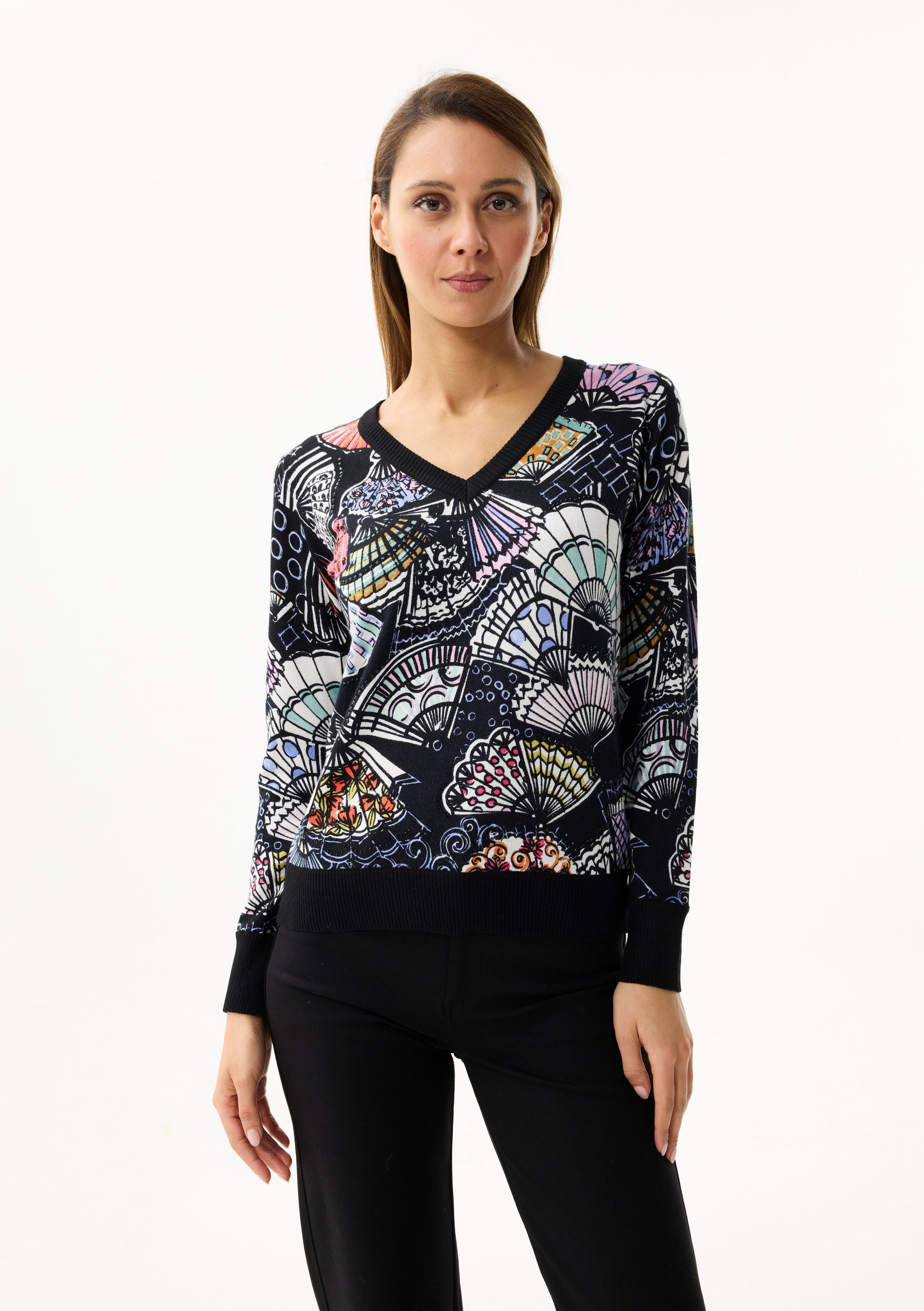 LEO&UGO Coloured Fan Knit V-Neck Jumper