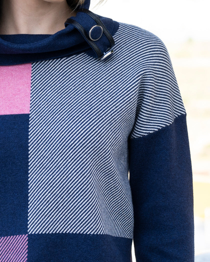 Marble Pink and Navy Cowl Neck Knit Jumper