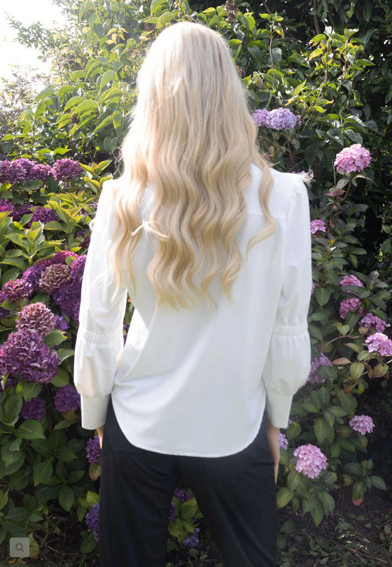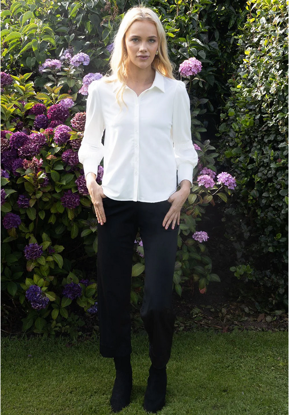 The No2moro White Clio Travel Shirt combines refined design with modern functionality. Crafted from high-tech stretch fabric, it ensures effortless comfort and movement. The sharp collar and button-front closure provide a polished silhouette, while subtly puffed sleeves add a touch of elegance. Ideal for travel or everyday wear, this shirt elevates your wardrobe with both style and practicality.