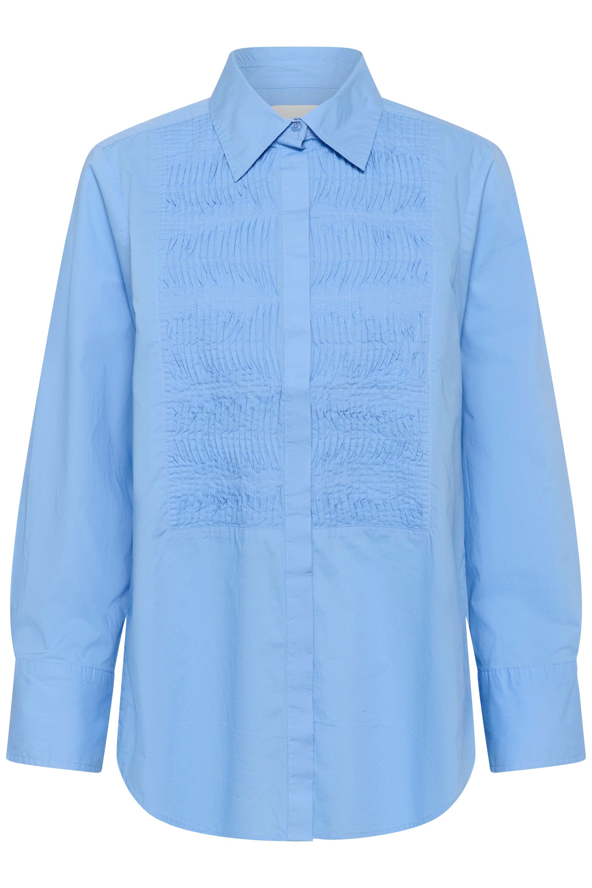 The Part Two Vista Blue Blouse features a refined regular fit and a timeless classic collar, paired with full-length sleeves for elegant coverage. Its lightly smoked front panel adds subtle depth, while the lightweight fabric ensures comfort and ease throughout the day. A sophisticated choice that blends classic style with modern detailing.