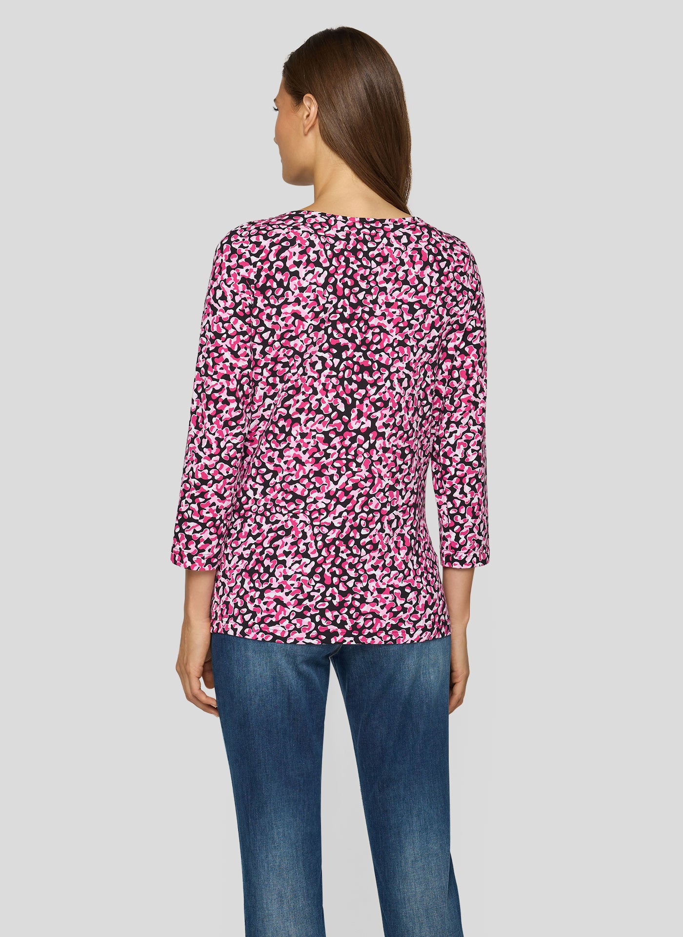 Elevate your wardrobe with the RABE Pink Speckled Jersey Top, featuring a refined round neckline and elegant 3/4 length sleeves. Crafted from soft, cotton rich (92%) jersey fabric, it offers comfortable wear with a subtle speckled pattern that adds a touch of sophistication and visual interest to your everyday style. Perfect for layering or wearing alone, this top blends timeless design with modern comfort.
