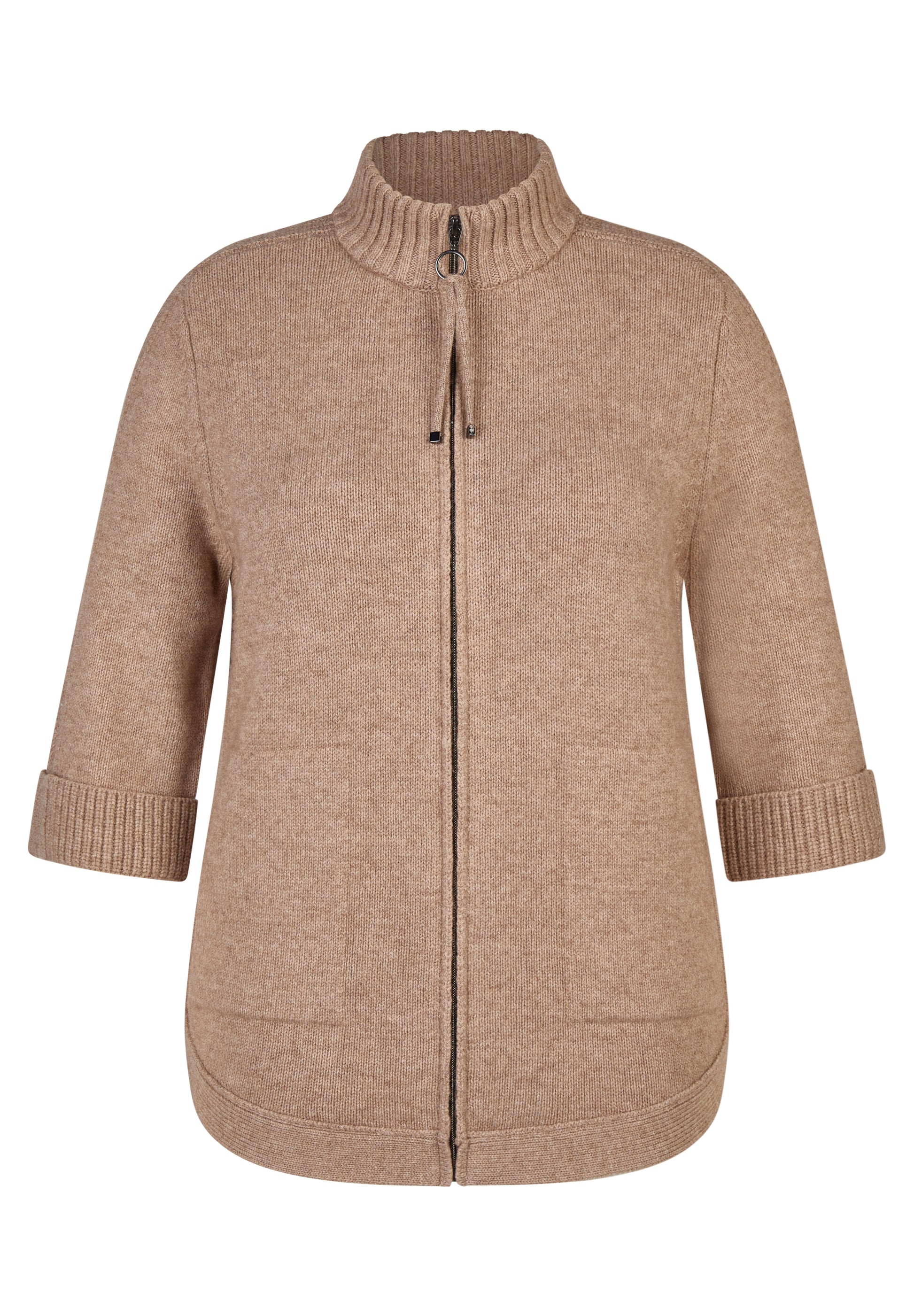 RABE Taupe Knit Zip Longline Cardigan