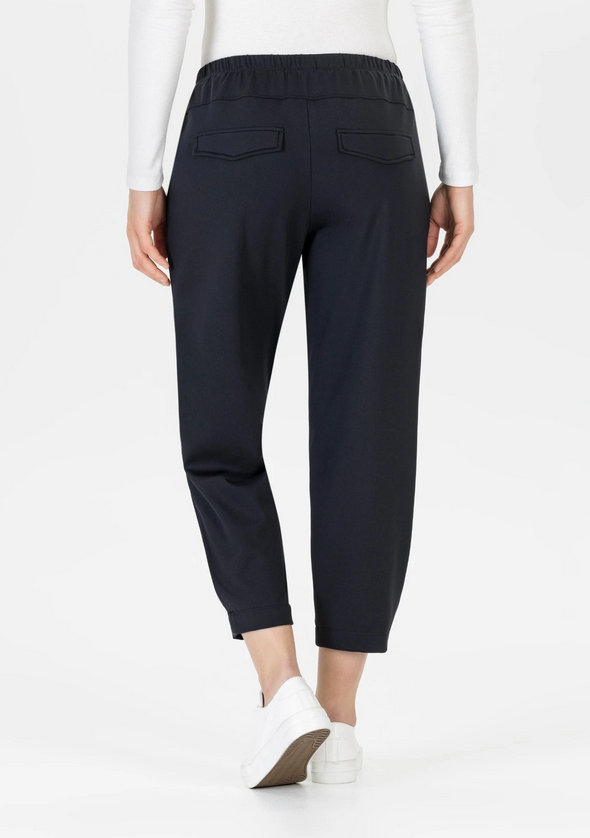 Experience comfort and style with the Stehmann Black Rachell Trousers, featuring a fully elasticated waist for a perfect fit all day long. Crafted from light, breathable fabric, these trousers keep you cool and comfortable, whether at work or out and about. Elevate your wardrobe with trousers designed to move with you without compromising on elegance.
