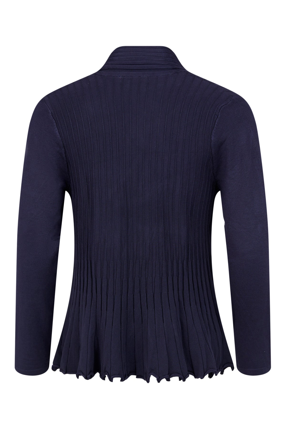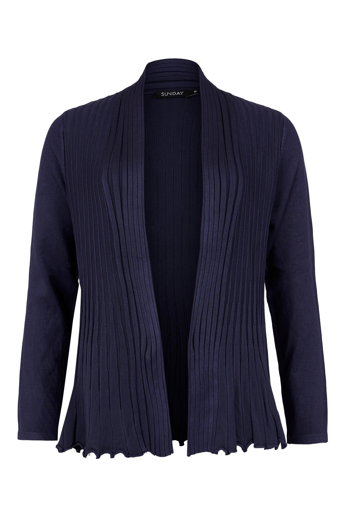 Elevate your layering with the SUNDAY Navy Pleated Edge Cardigan, featuring elegant accordion pleats that add refined texture and movement. The shawl neckline frames the face beautifully, creating a graceful silhouette, while the edge-to-edge design offers a sleek, seamless look. This timeless piece balances sophistication with effortless style, perfect for dressing up or enhancing casual ensembles.